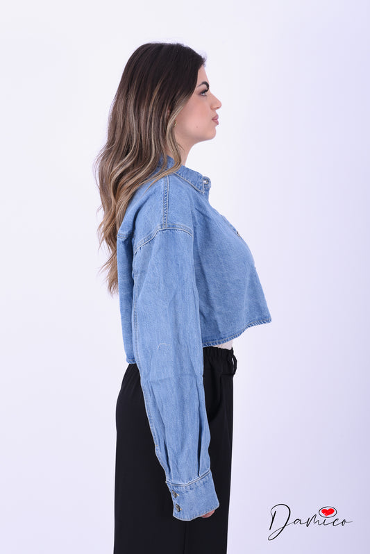 Giubbotto di jeans girocollo