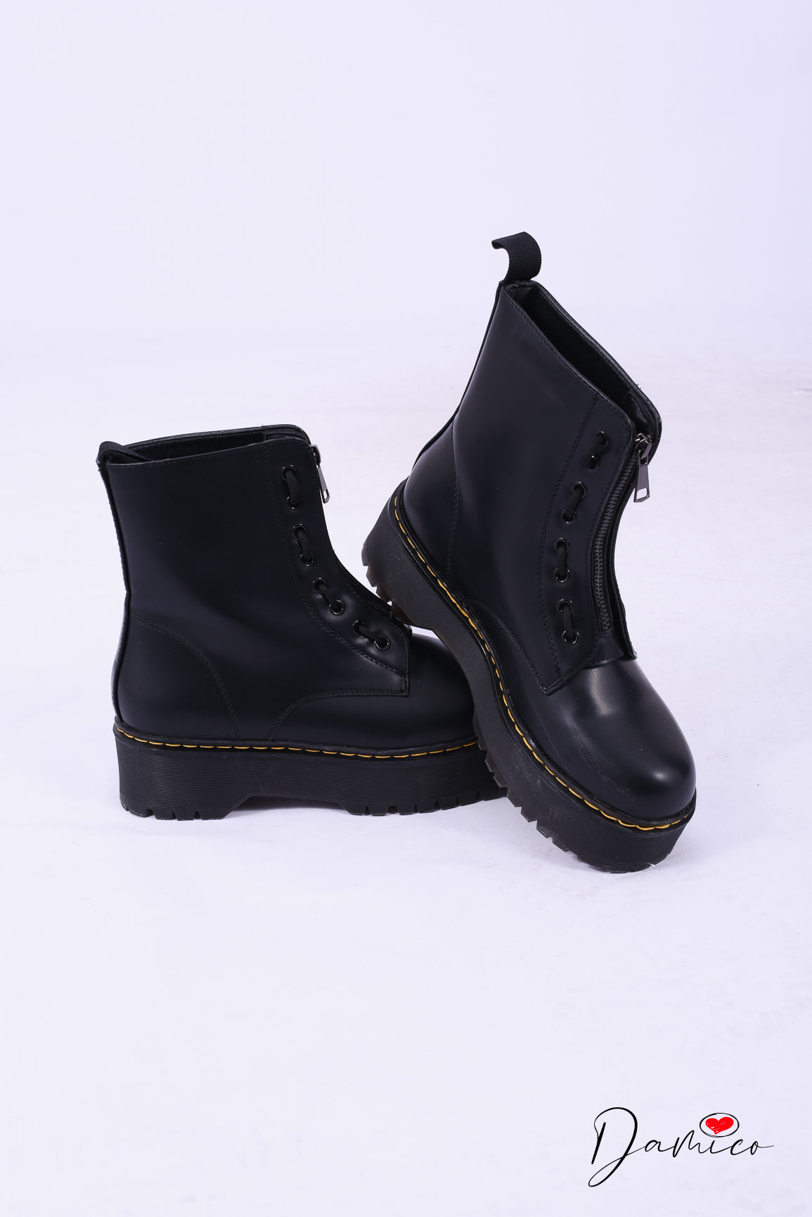 Anfibio Platform con zip davanti e lacci figurativi.