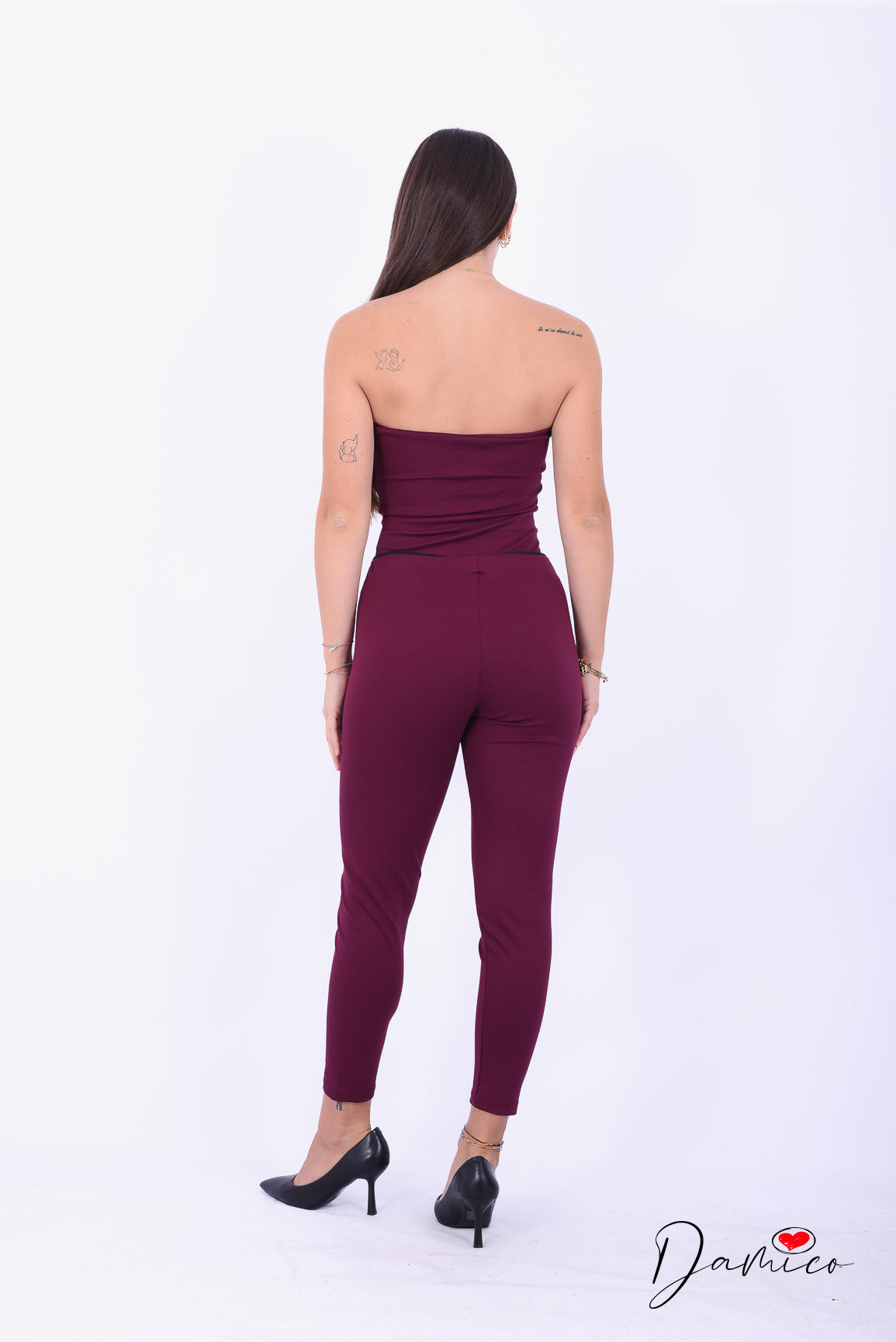 body senza spalline e pantalone lungo a palazzo, elasticizzato in vita.