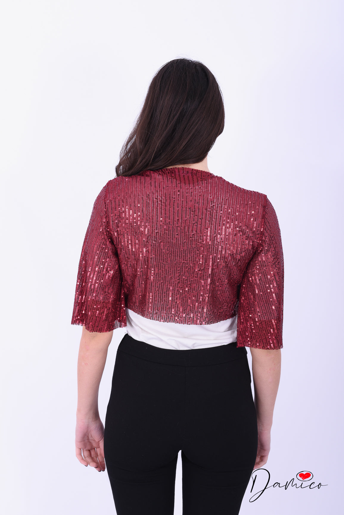 Copri spalle in paillettes con maniche corte e nodo sul davanti