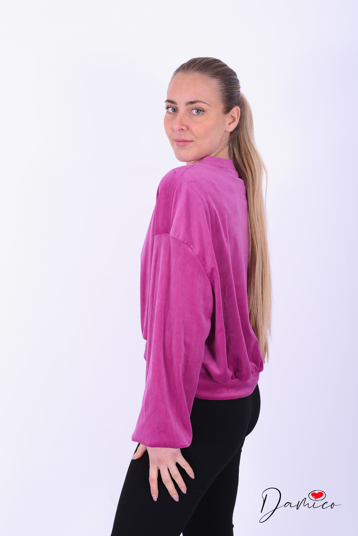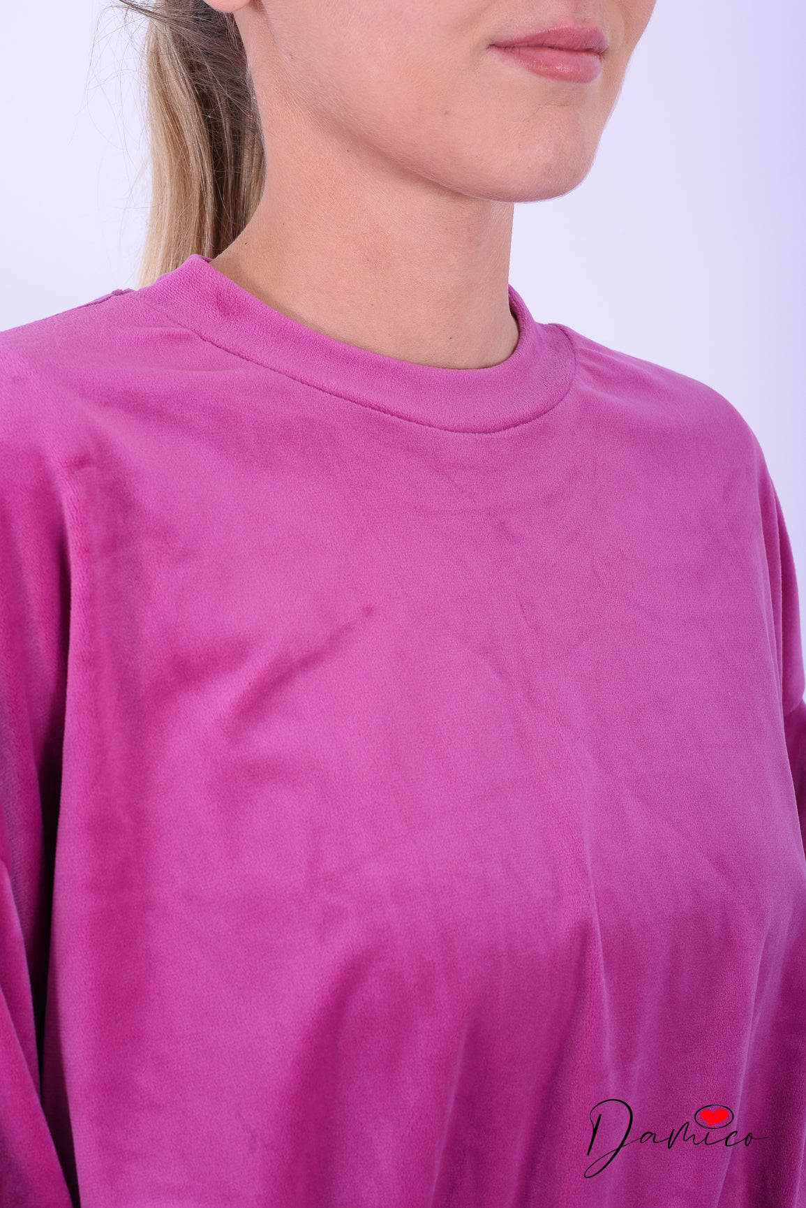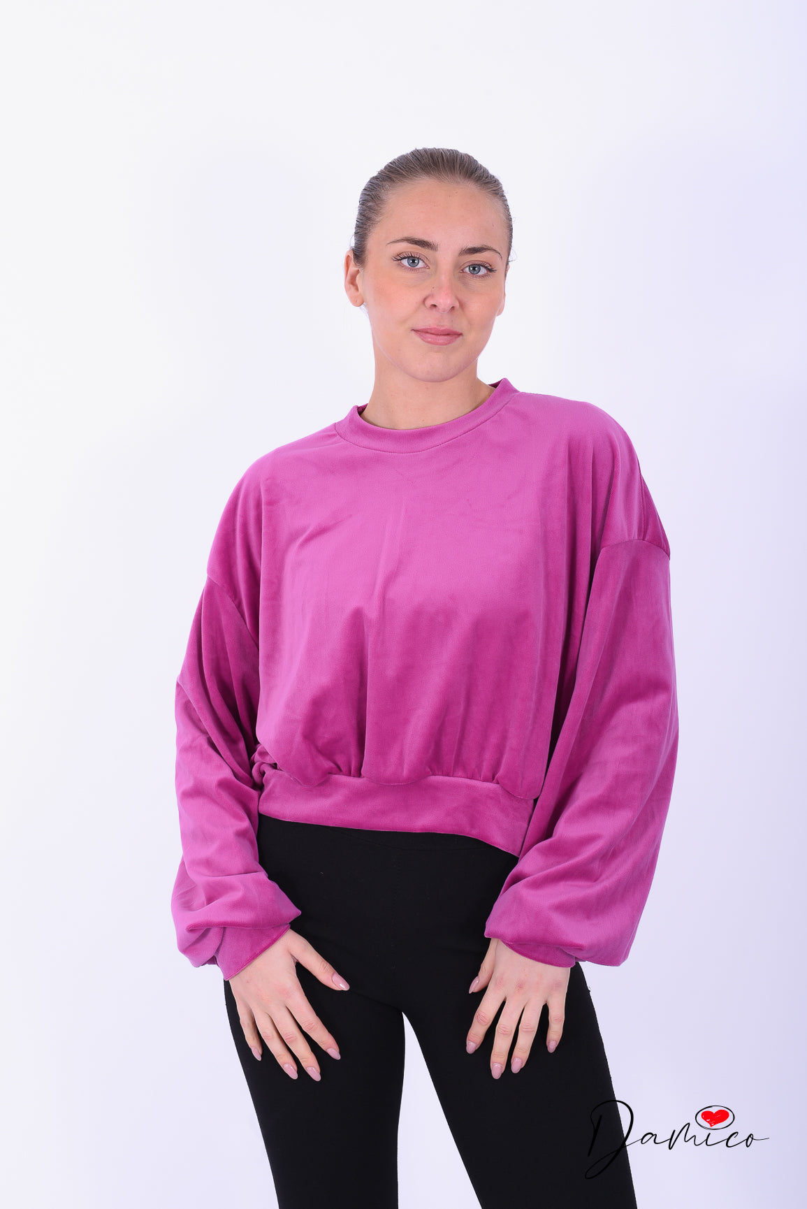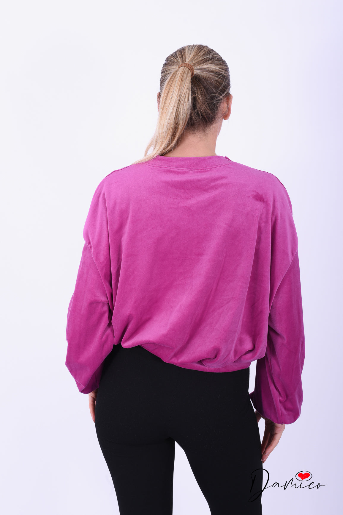 Felpa over ciniglia con scollo fondo e polsi bordati