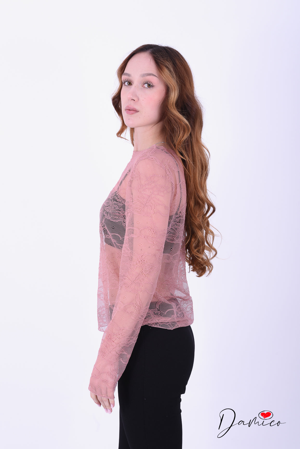 Maglia totalmente in pizzo semitrasparente