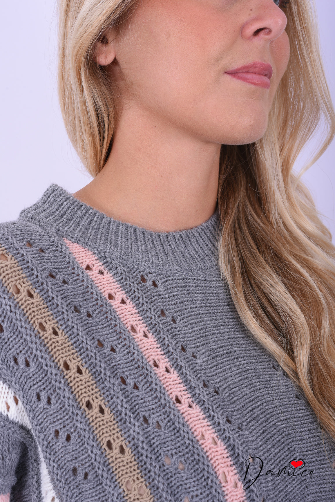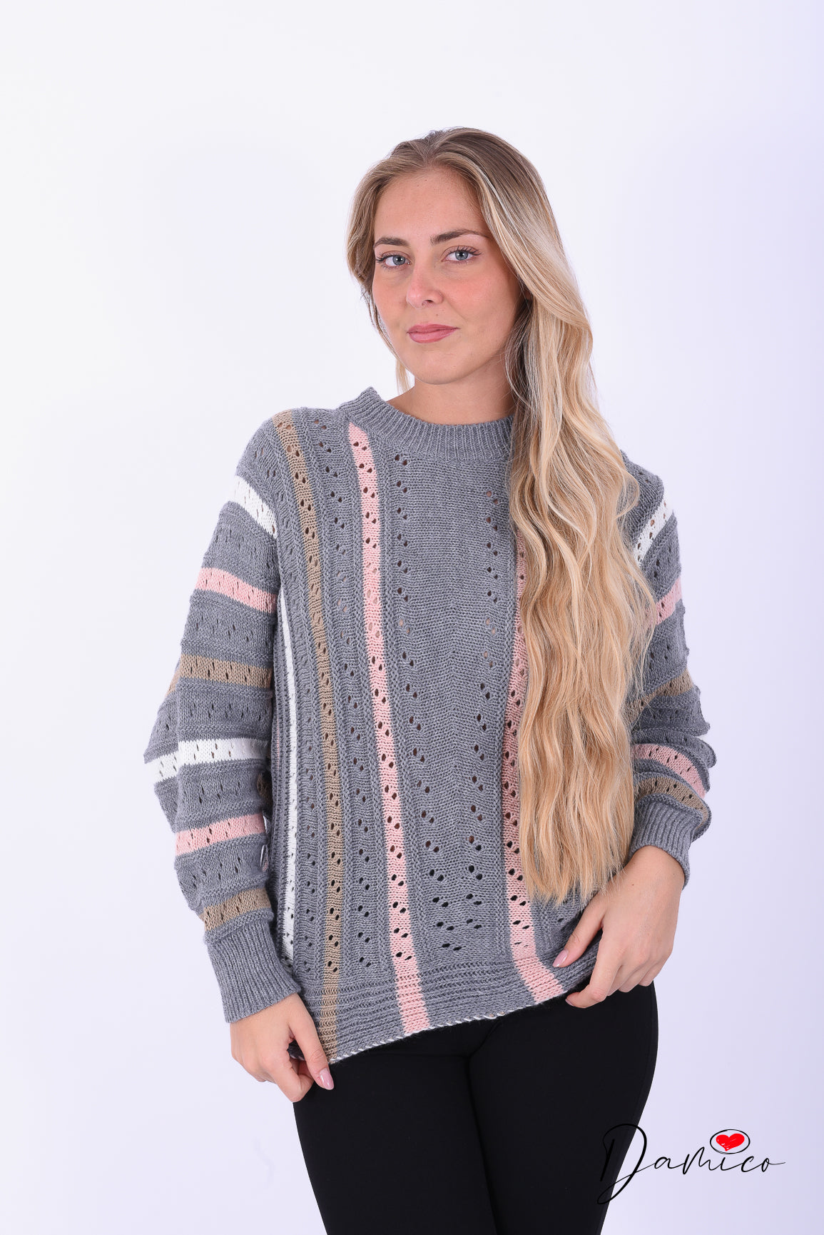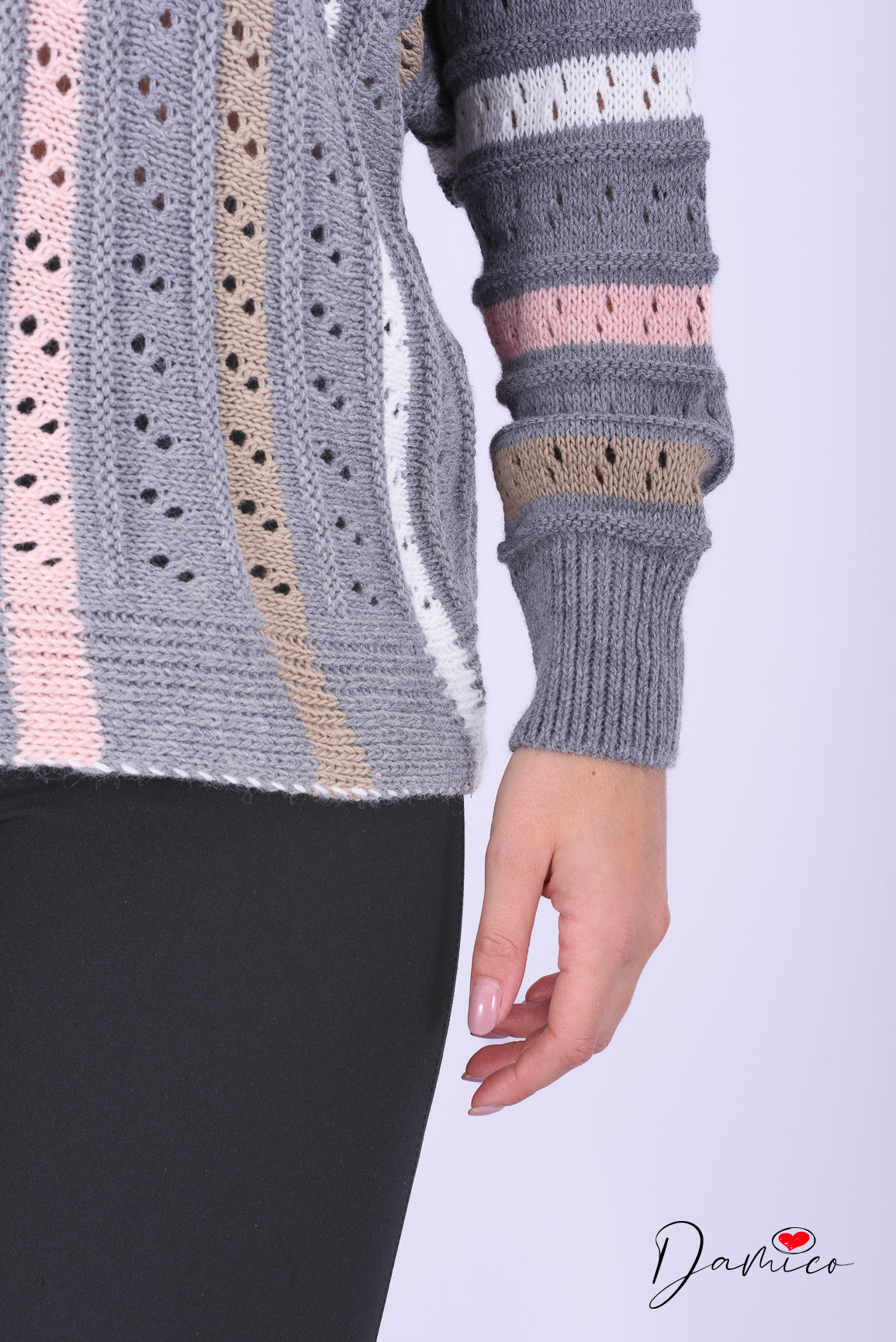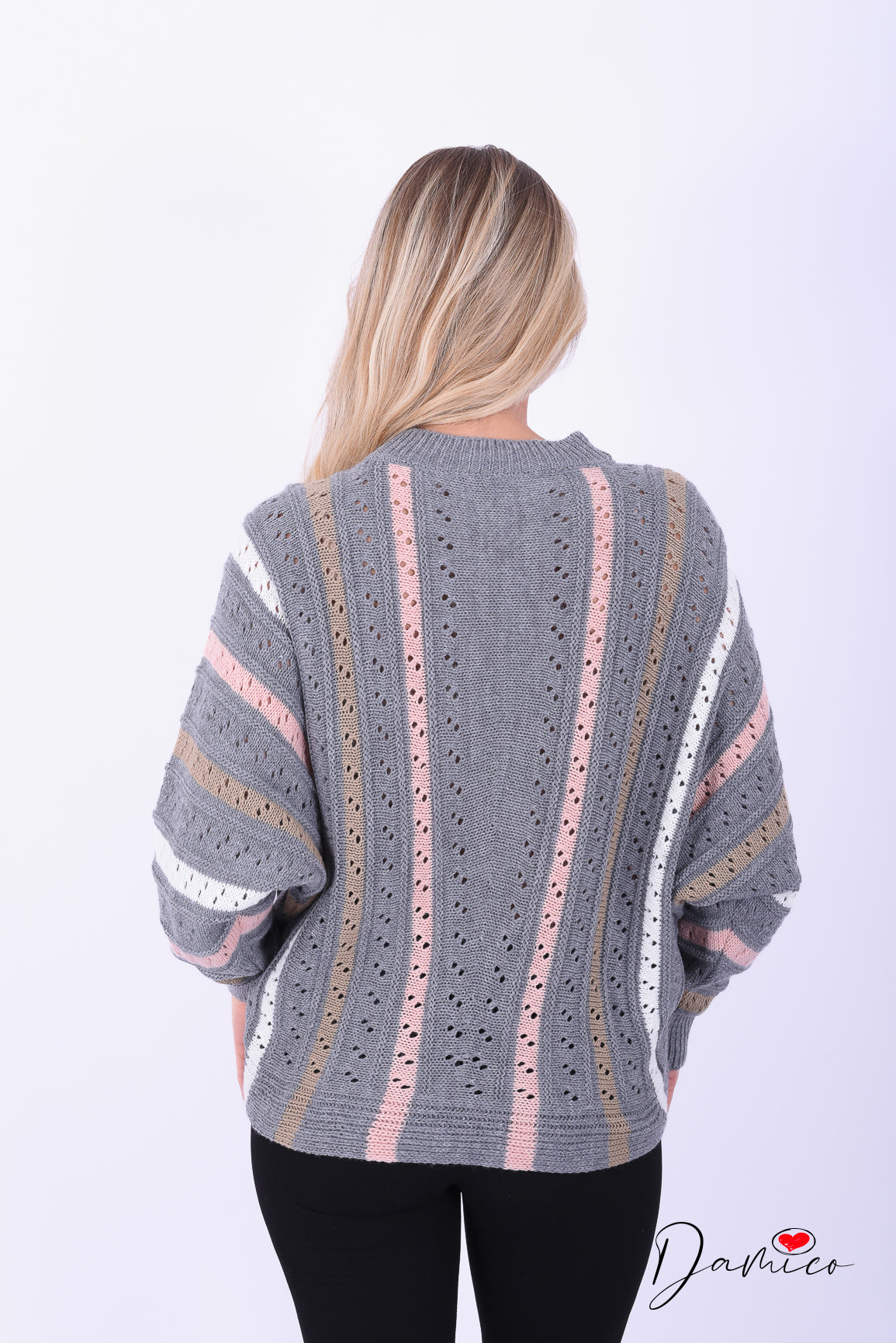 Maglione traforato a righe verticali